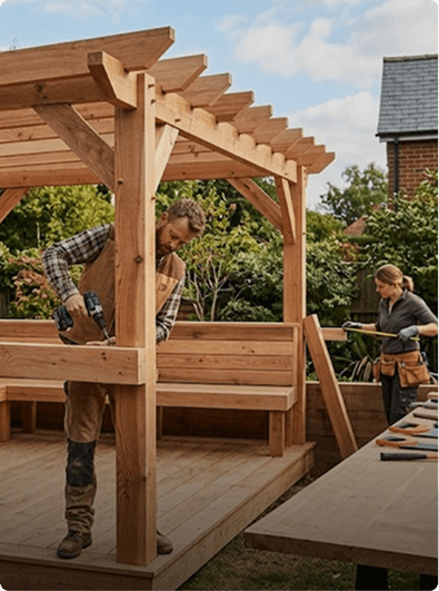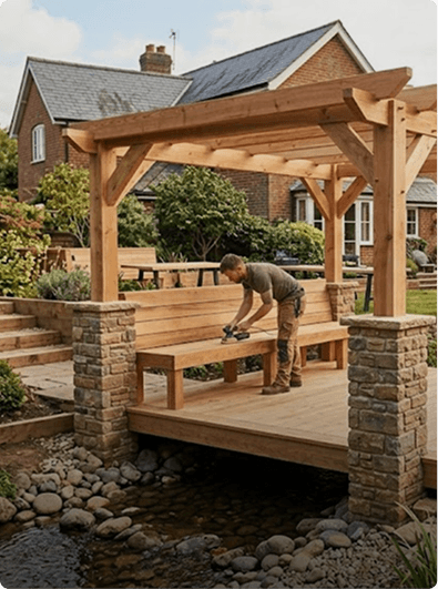 Timber structures add warmth and character to outdoor spaces. We build decks, seating areas, and feature elements with care.