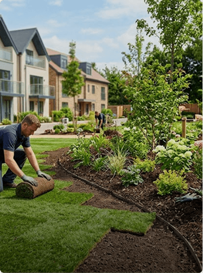 Green spaces improve the feel of any development. Fresh turf and carefully selected plants create welcoming environments.